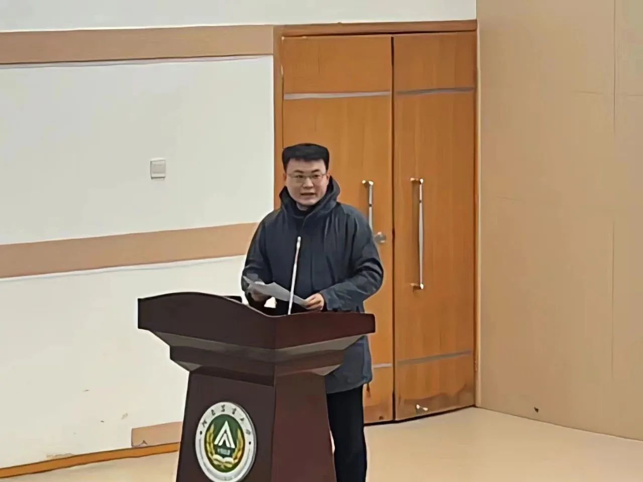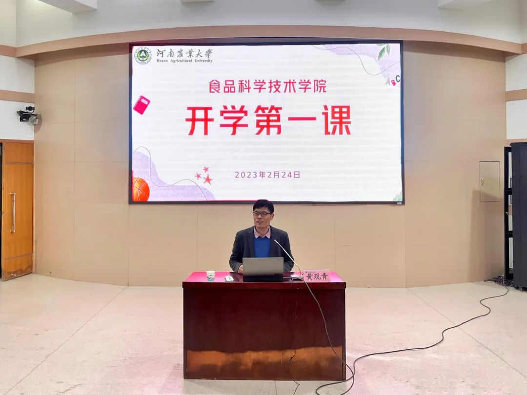 于文化路校区三百人报告厅开展第四期“开学第一课”,院长黄现青出席并担任主讲,学院部分同学参加。此次会议由院团委副书记陈翔主持。