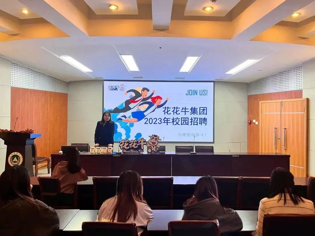 于文化路校区一百人报告厅组织召开花花牛2023校园招聘宣讲会,花花牛招聘专员党雅丽、贾萱出席会议,哔咔漫画