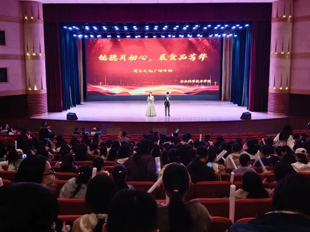 于文化路校区千人大礼堂举办“铭穗月初心,展食品芳华”周末文化广场活动。食品学院全体师生欢聚一堂,共享艺术盛典。