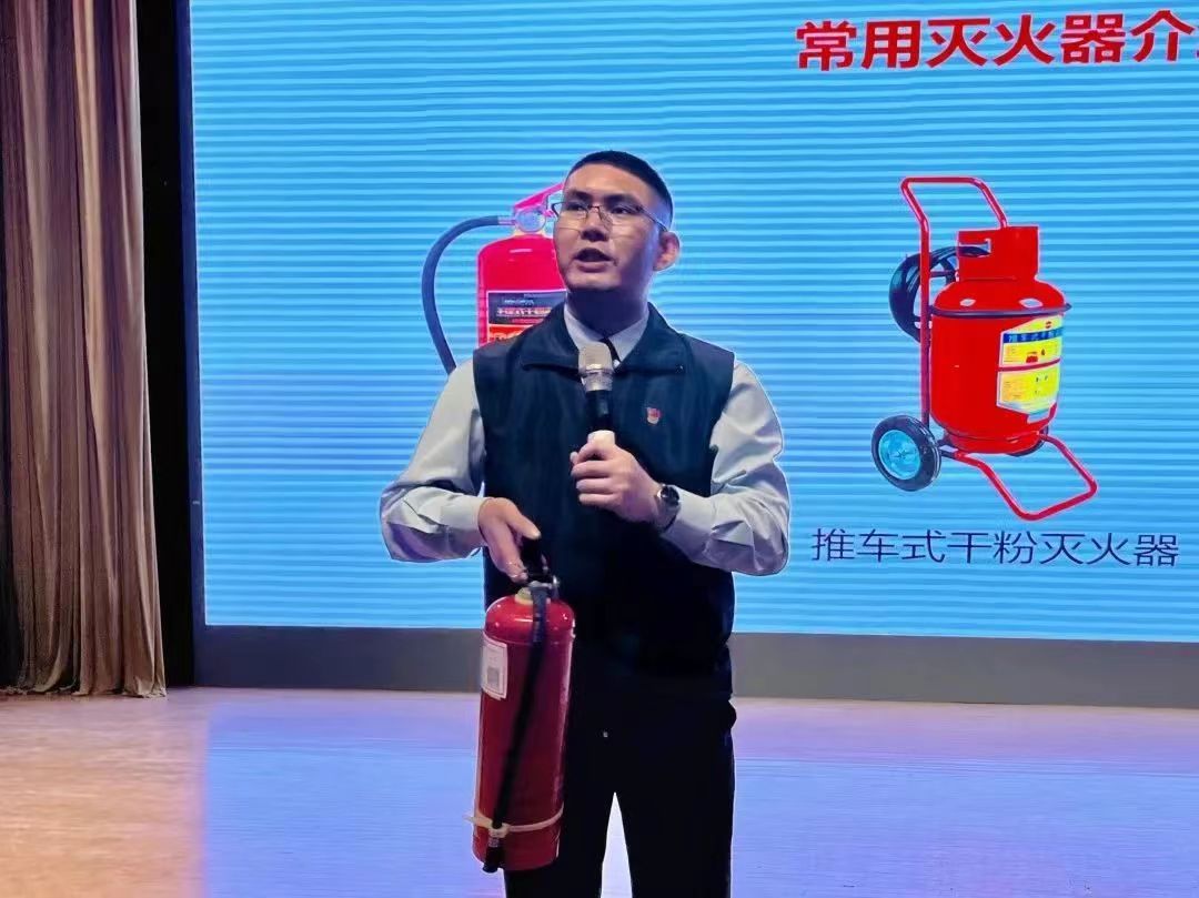 彭冲向同学们讲述了最近郑州发生的多起火灾事故,详细介绍了全国火灾形势、引发火灾原因、发生火灾的高危场所,指出了火灾对人身、财产、健康、环境等多方面的危害,并现场指导了灭火器正确的使用方法。他强调,学校是火灾发生的重灾区,任何可能发生火灾的隐患都不能掉以轻心,要保持人走电器灭,不使用大功率电器。针对宿舍突发火灾的问题,他提醒同学们要根据手触门把手的温度判断在寝室等待救援或自救逃生。