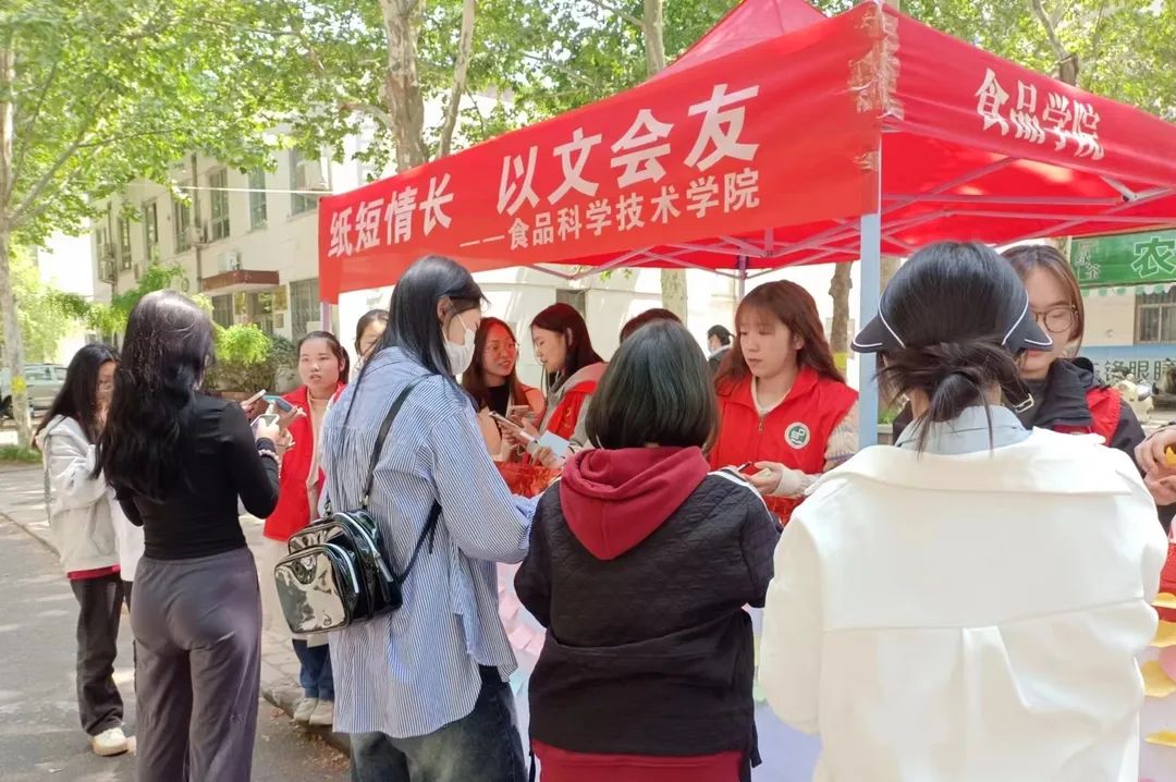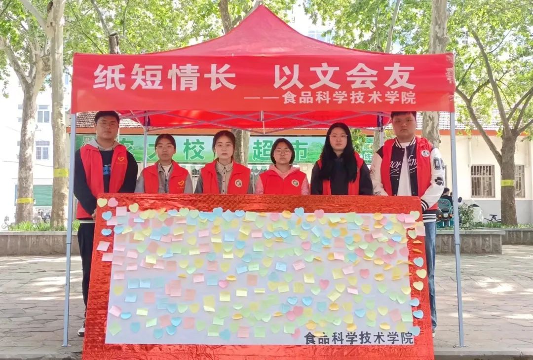 阳光志愿者协会于文化路校区校园超市门口举办“纸短情长,以书会友”主题活动。