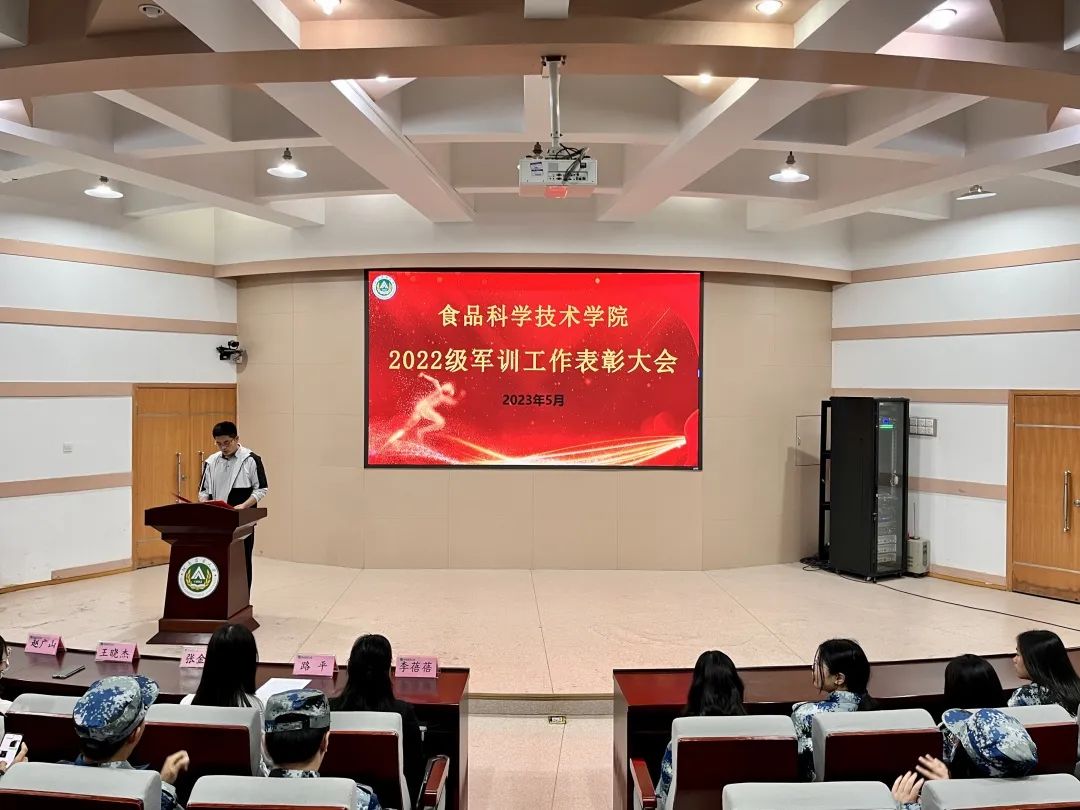 于文化路校区300人报告厅召开2022级军训工作表彰大会。院党委副书记李蓓蓓,院团委书记路平,22级食品六班班主任王晓杰、食品七班班主任赵广山出席会议,哔咔漫画