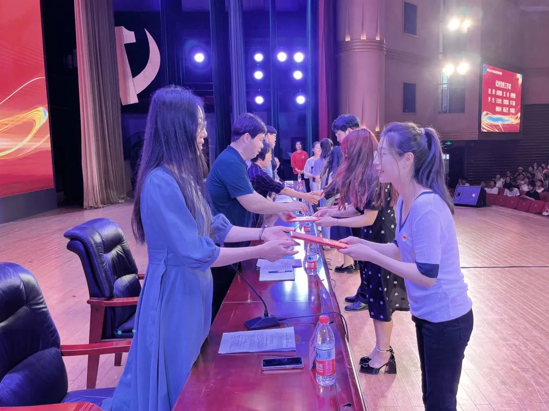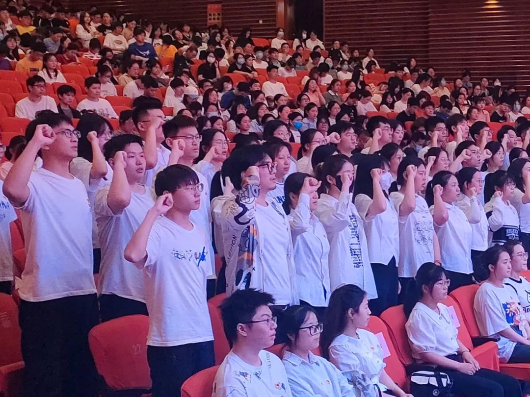 于文化路校区千人大礼堂隆重举行2022-2023学年新党员宣誓大会暨学院工作表彰大会。学院领导和全体师生参加会议。