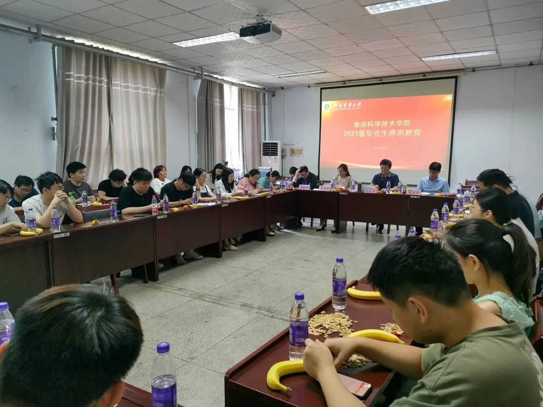 于文化路校区17号楼405召开毕业生感恩教育座谈会,院党委书记赵改名,院长黄现青,院党委副书记李荷蕉,副院长张剑、谢新华及教师代表出席会议,本科生、研究生毕业生代表参加会议。