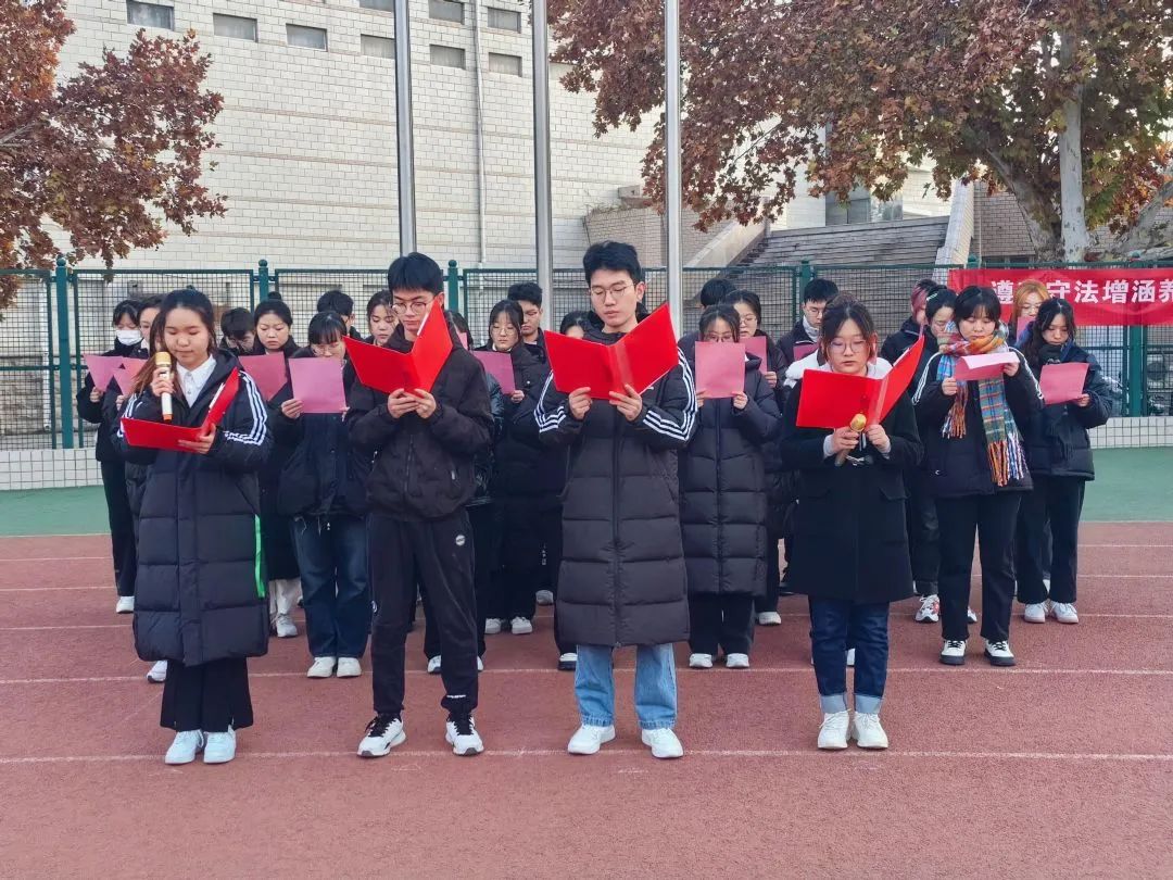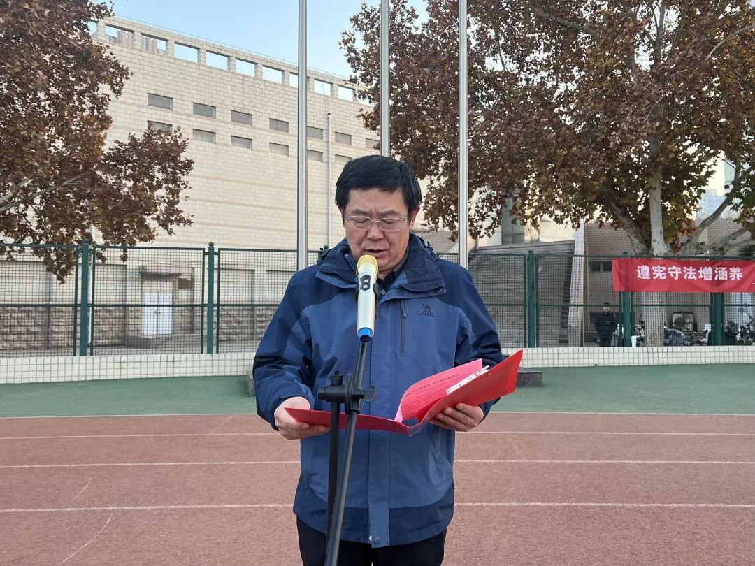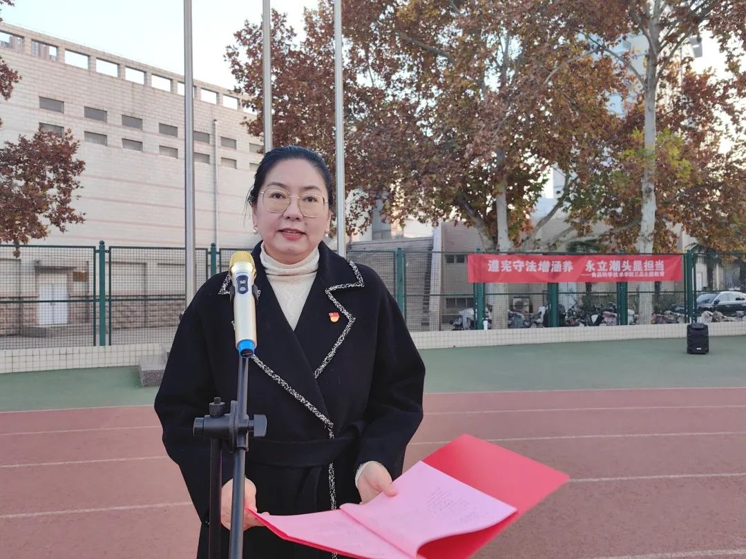 于文化路校区举行“遵宪守法增涵养,勇立潮头显担当”主题升国旗仪式,院领导赵改名、黄现青、张剑、谢新华及全院师生参加活动。此次活动由院党委副书记李蓓蓓主持。