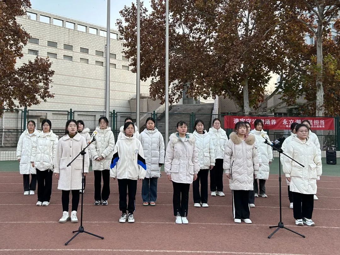 升旗仪式在全体师生一同合唱校歌《绿色颂》中结束。