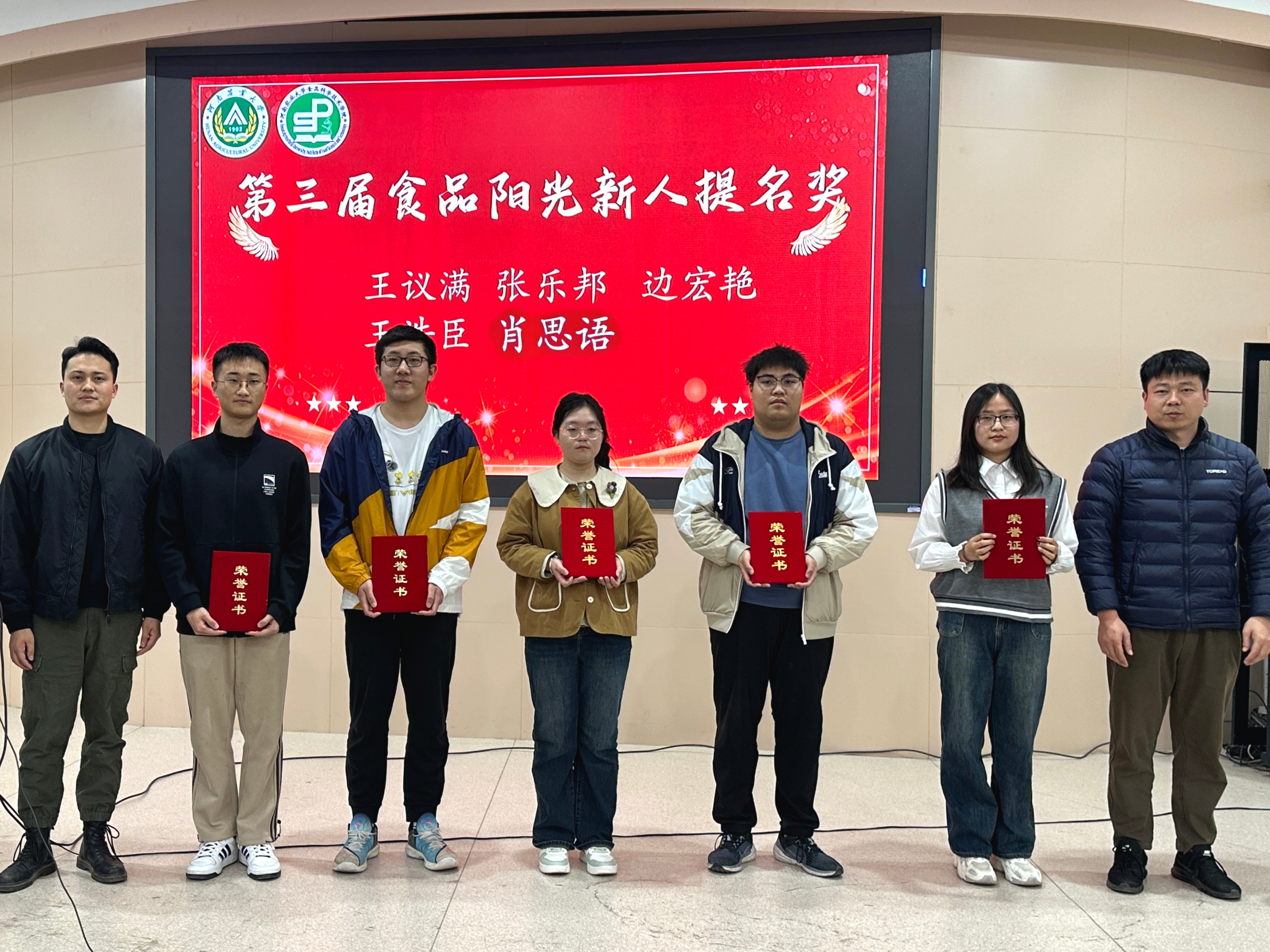 最终结合评委老师打分、现场观众投票选出本届“食品阳光新人”五名,“食品阳光新人提名奖”五名,“食品阳光新人入围奖”九名,并进行颁奖仪式。