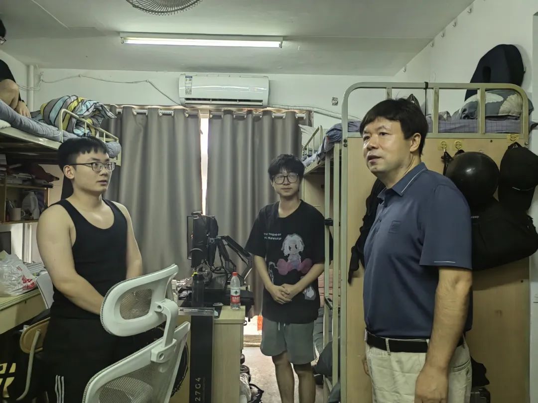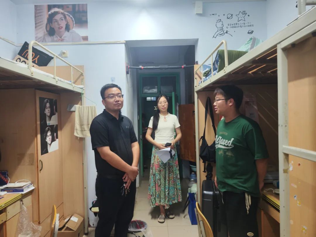 在走访过程,老师们详细询问了同学们假期的学习、生活和健康状况,了解到同学们丰富的假期生活。老师们还细心叮嘱同学们检查宿舍电器、窗户等是否存在安全隐患,确保每位同学都能有一个安全、舒适的居住环境。同时老师们提醒同学们要抓紧转变状态,迅速适应新学期的生活节奏,对接下来的学习任务要充满期待与信心。在走访宿舍时,老师们嘱托同学们夏季天气炎热,开空调时温度不要过低,要勤通风,预防感冒。此外,学院老师还热心嘱咐同学们如果在学习生活中遇到困难,一定要找老师解决问题。