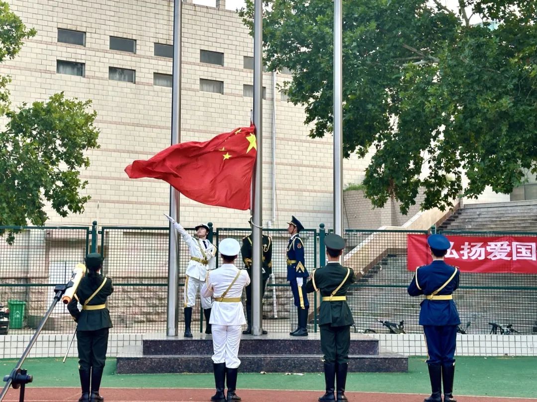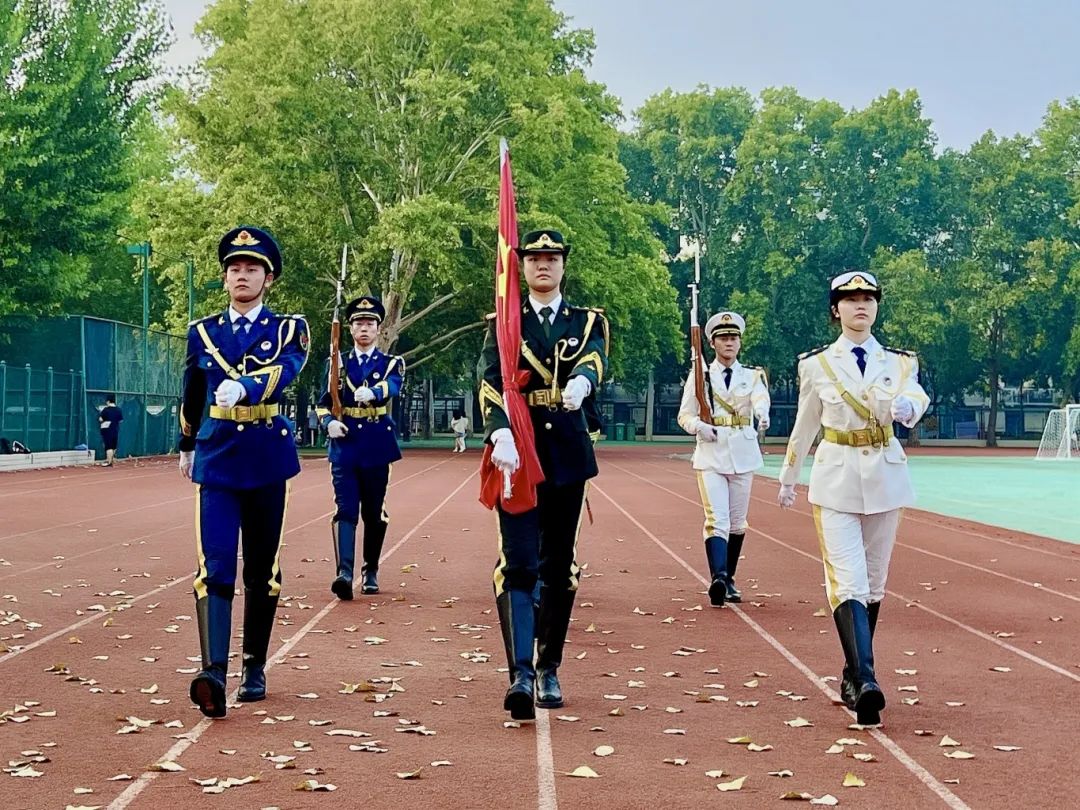 仪式伊始,国旗护卫队迈着铿锵有力的步伐护送国旗入场,随着雄壮的《义勇军进行曲》的响起,鲜艳的五星红旗冉冉升起,全体师生庄严肃立,面向国旗行注目礼。