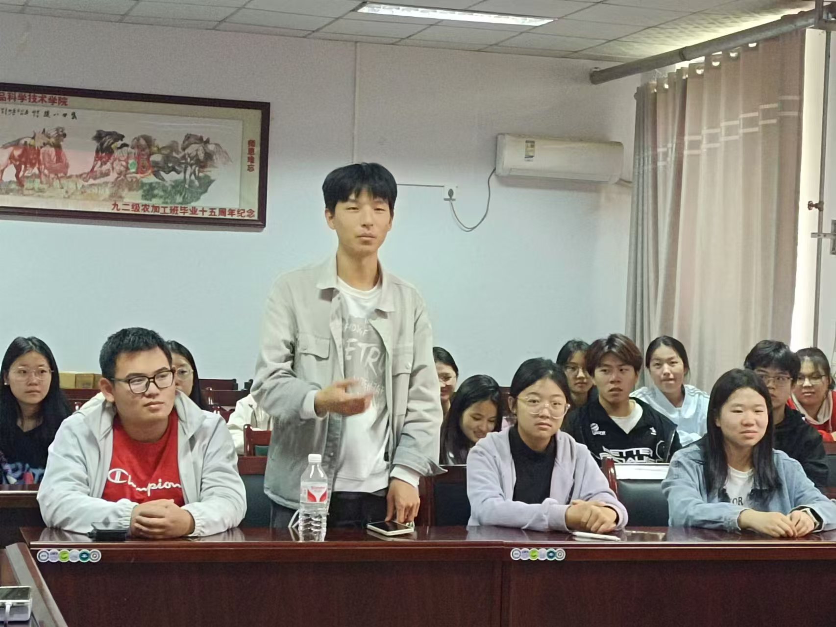 全国高校活力团支部19级食工一班班长郑一晨通过展示班级的学风班风建设成果,勉励大家在班级中要有作为,有凝聚,有追求,共同建设学风优良的班级体。