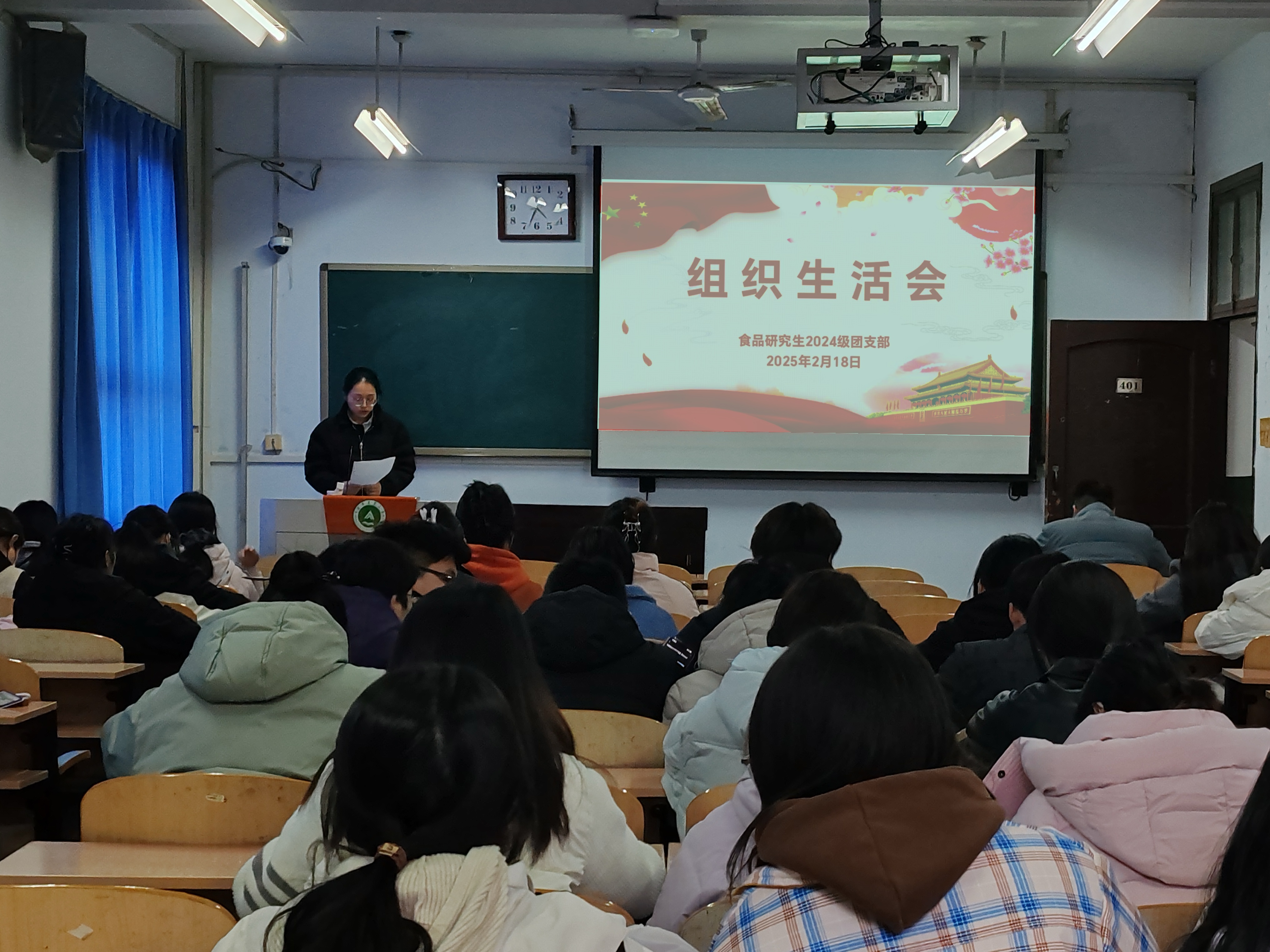 于2025年2月18日在3号楼开展了食品研究生2024年度组织生活会。团委副书记张金龙及2024级全体研究生参会。