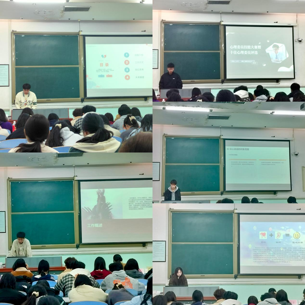 于文化路校区工程楼206室召开心理委员技能大赛暨十佳心理委员评选活动,院团委书记路平、辅导员丁明明、王小花出席此次活动,23、24级部分同学参加。