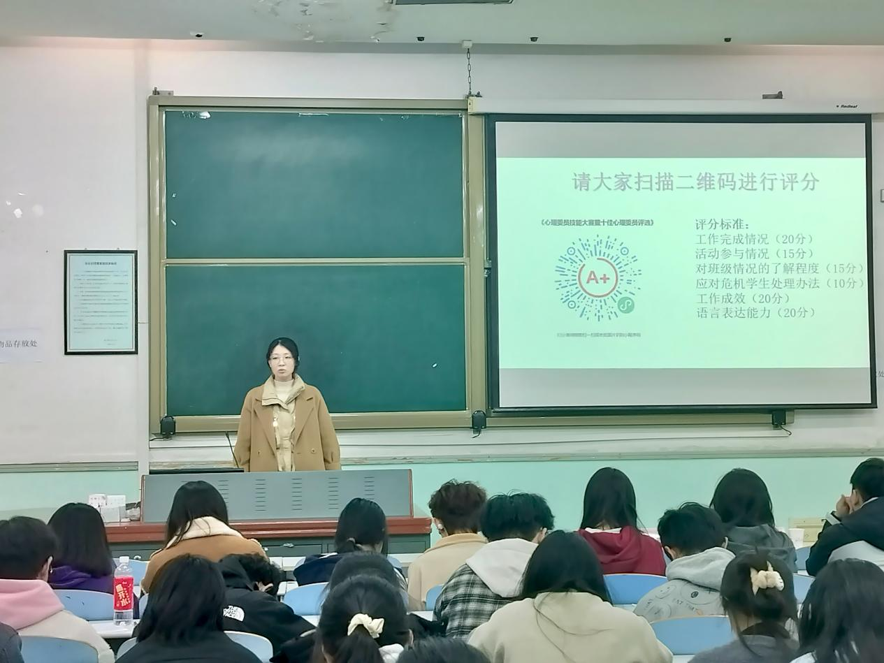 活动伊始,由路平做开场发言,她肯定了参与评选的心理委员的工作能力,并鼓励同学们积极参与相关心理活动,提升工作经验。