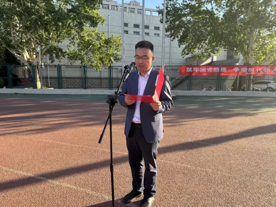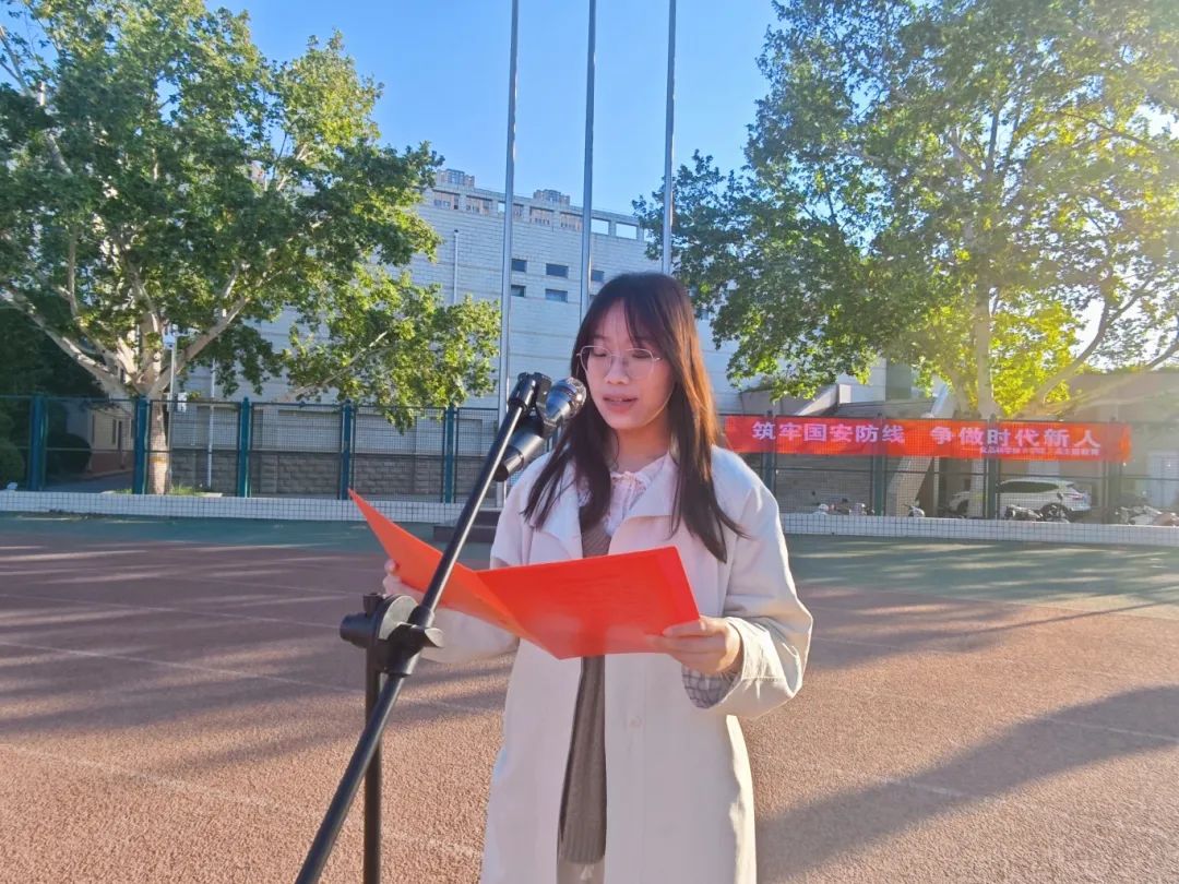 于文化路校区举办“筑牢国安防线,争做时代新人”升国旗仪式。院党委副书记焦帅、团委副书记张金龙、辅导员丁明明及学院全体在校生参加。本次仪式由张金龙主持。