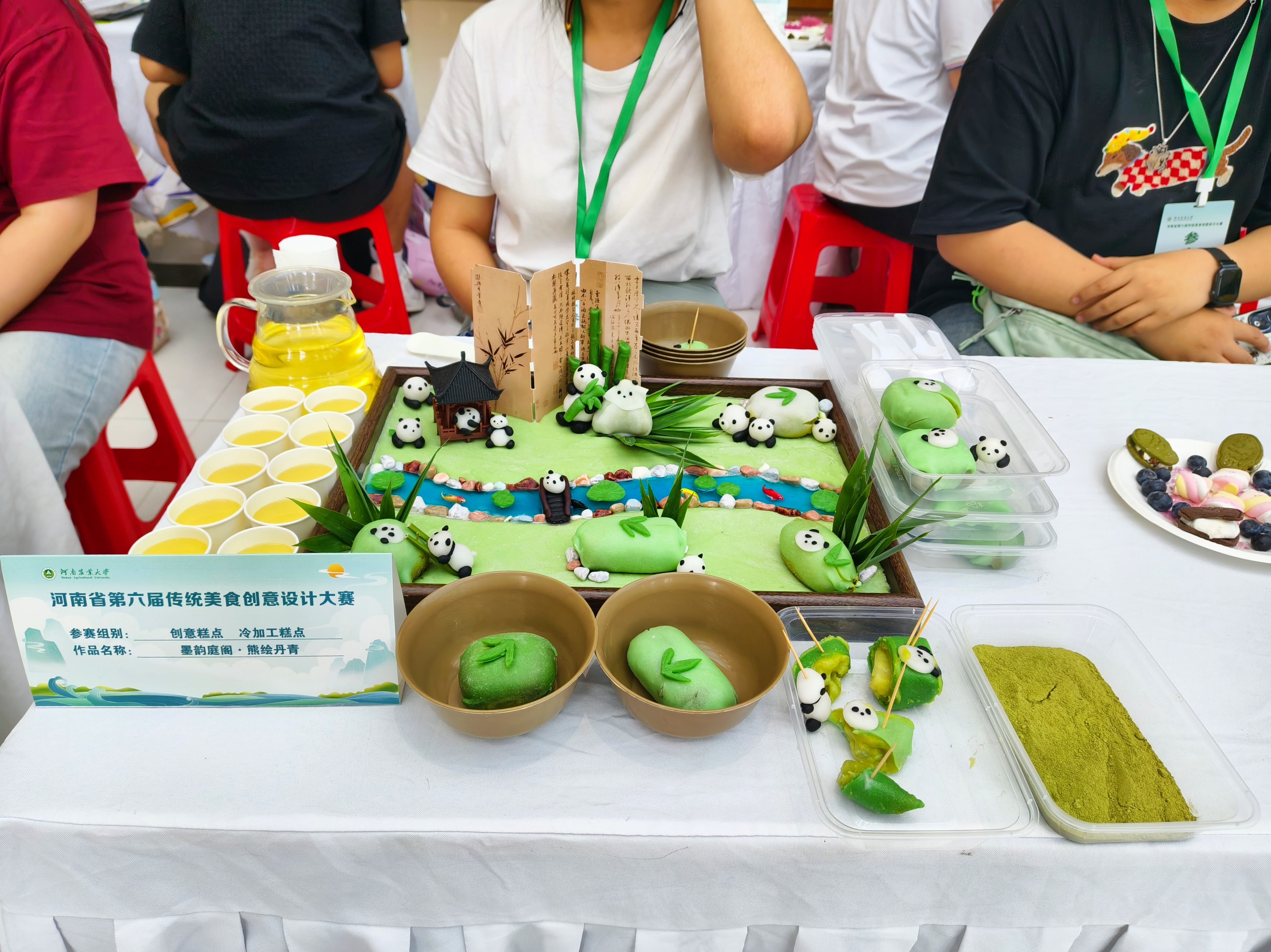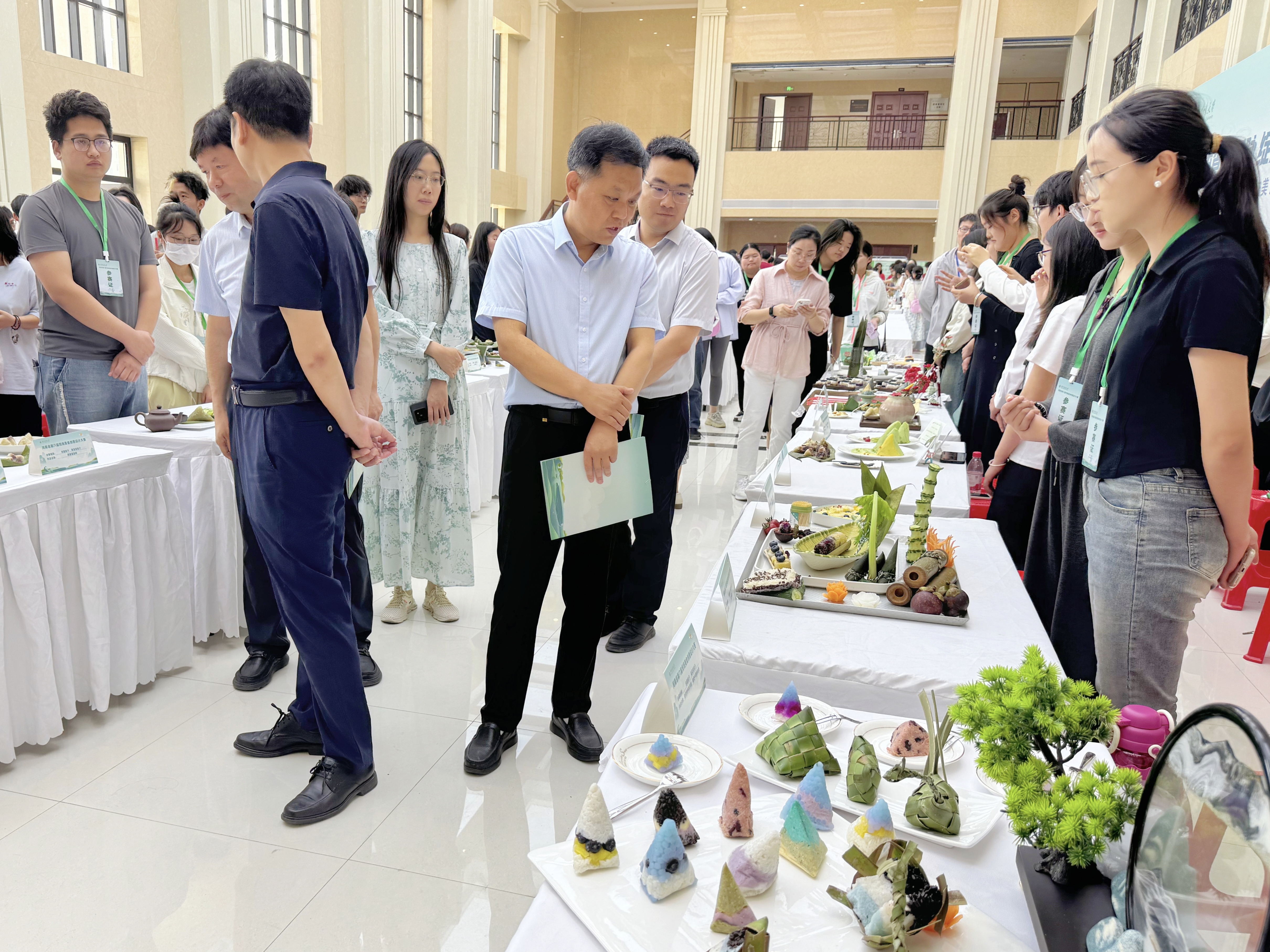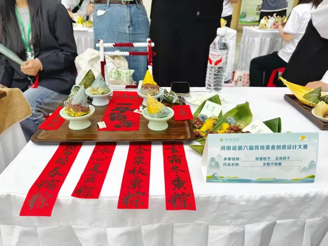 本届赛事吸引了来自河南省10余所高校的150组选手参赛,提交创意作品近200件。美食大赛设三大创意分区:创意糕点展区陈列着造型精巧的作品,将国风元素与西式美学融合,带来视觉与味觉的双重享受;创意粽子展区中,咸甜各异的特色馅料搭配新颖包制手法,重新诠释传统粽香;创意肉制品专区里,经典肉类食材经分子料理技术与特色烹饪工艺重塑,呈现别具一格的新式佳肴,尽显美食创新魅力。