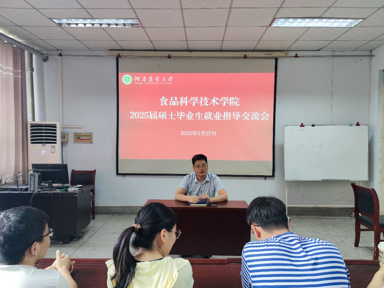研究生辅导员张金龙为毕业生分析了当前食品行业的就业趋势,并鼓励毕业生们树立信心,积极应对求职挑战,并从企业招聘角度出发,详细解读了食品行业人才需求标准,强调了专业技能与综合素质并重的重要性。