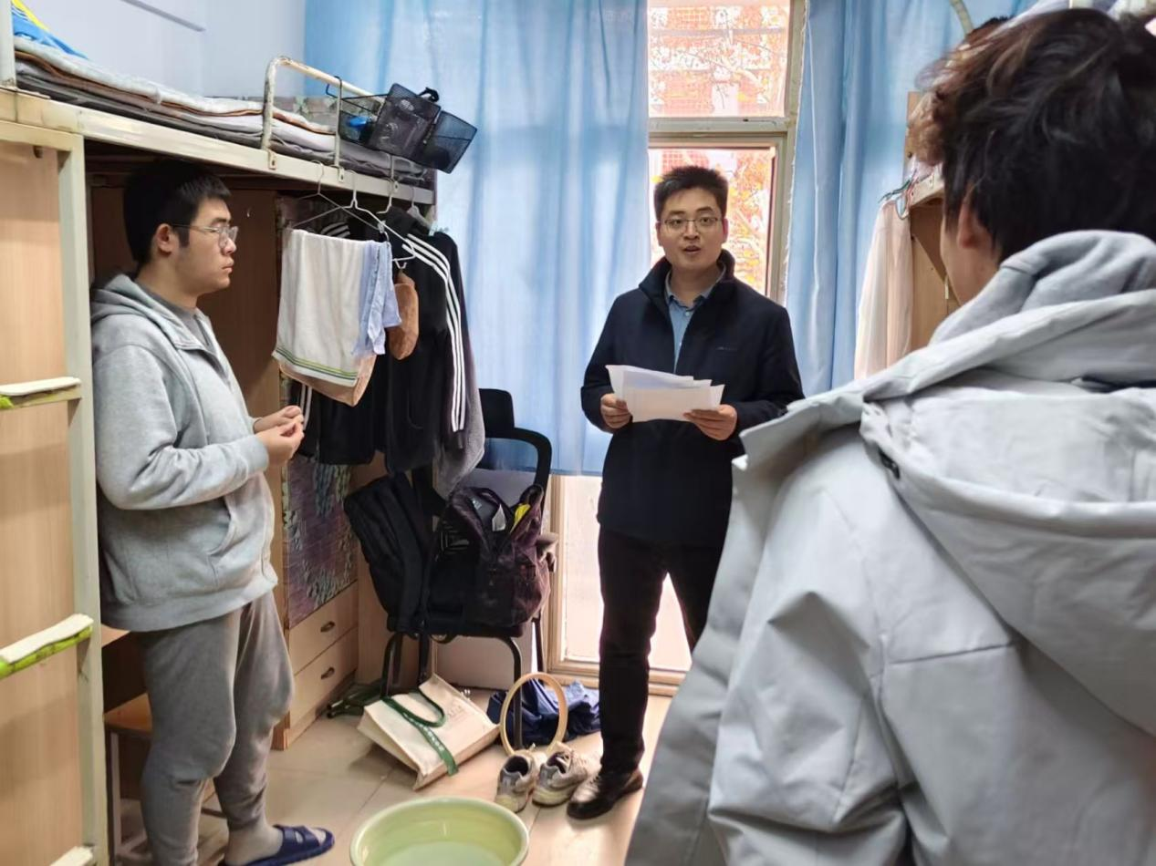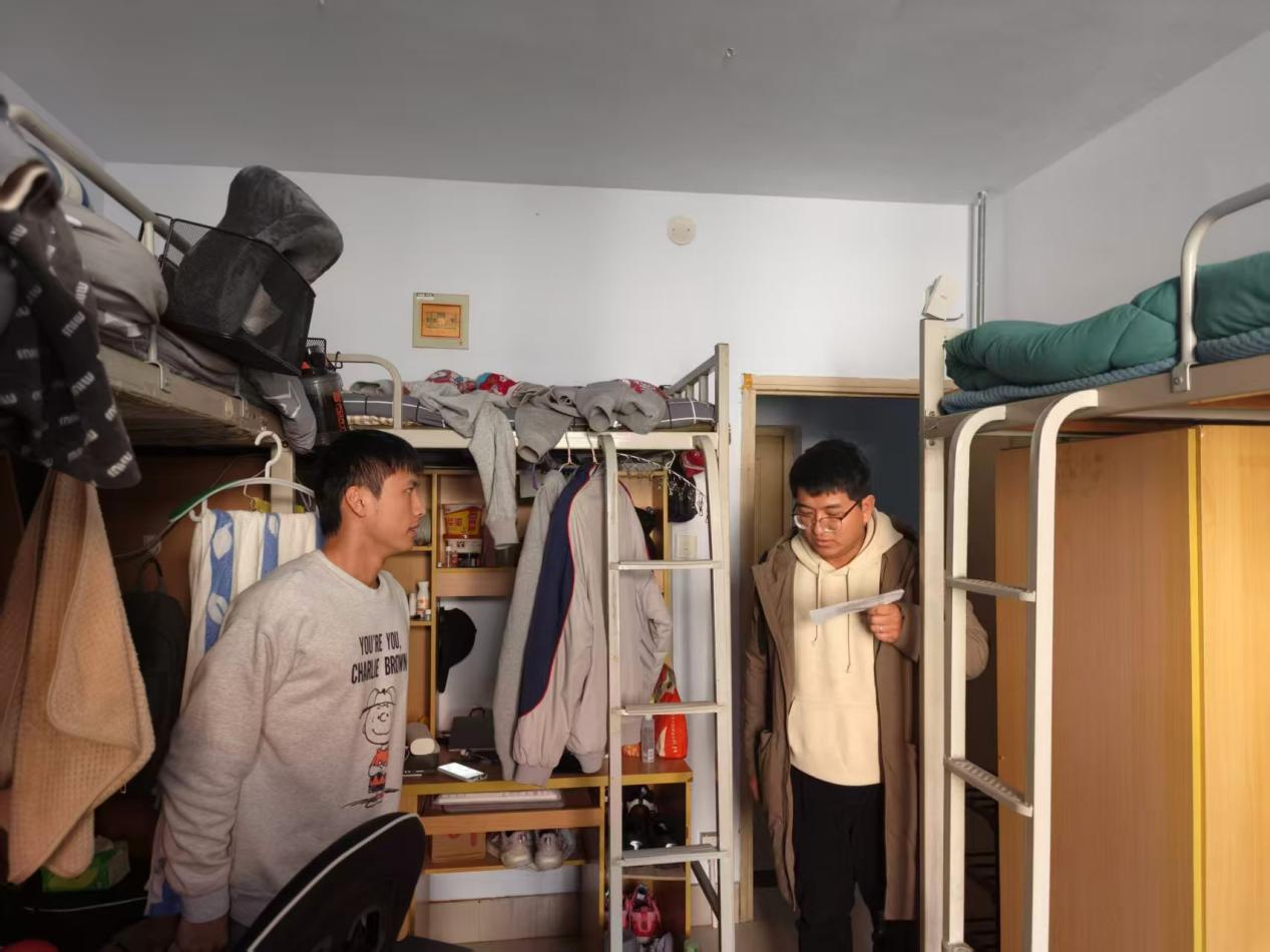 12月1日至2日,院团委书记路平、党委组织员陈翔、团委副书记张金龙、辅导员喻颢如、张泽群、银峰走进各年级学生宿舍开展“全覆盖、无死角”的安全排查。老师们重点检查宿舍电路是否老化、有无私拉乱接电线现象,违规电器使用情况,消防通道是否畅通、消防设施摆放是否规范,对发现的隐患当场指出并指导整改。同时对宿舍卫生状况、物品堆放秩序等进行细致督导。另外,老师们还与同学们亲切交谈,询问冬季生活需求,倾听学习生活中的困惑,用暖心关怀与严格排查,为同学们的冬季宿舍生活筑牢安全屏障。