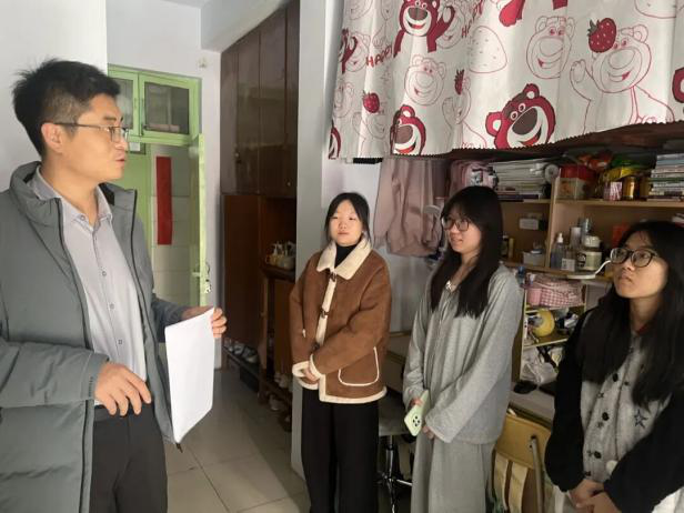 1.老师走访暖冬行:12月1日至2日,院团委书记路平、党委组织员陈翔等多位老师开展“全覆盖、无死角”排查,重点检查电路安全、违规电器使用、消防通道与设施规范,同步督导宿舍卫生与物品堆放,还与同学们亲切交谈,询问冬季生活需求、倾听困惑。