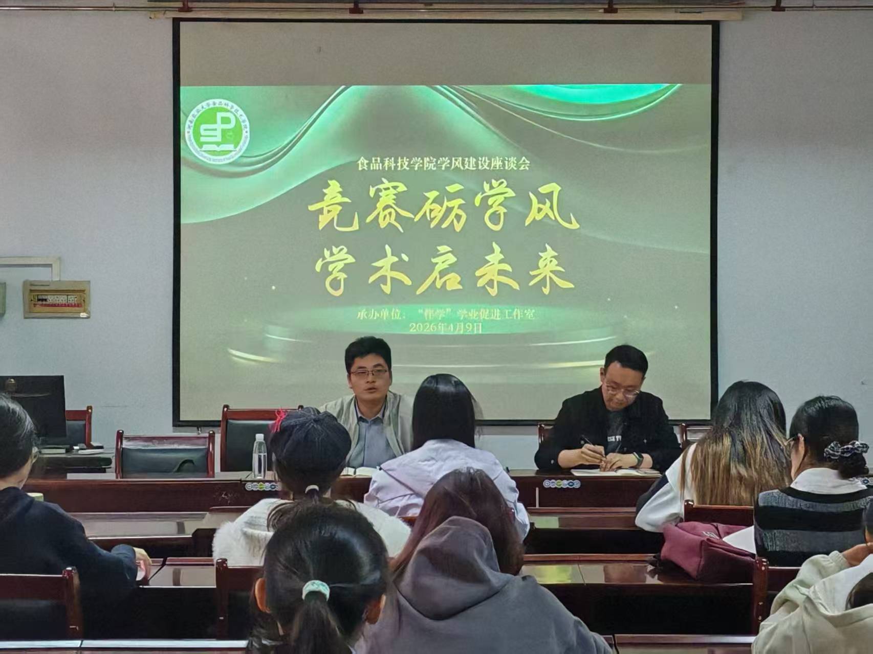 座谈会还邀请往届国赛优秀项目团队依次进行路演展示,围绕食品保鲜技术创新等内容,完整呈现了项目背景、技术亮点、市场分析及商业模式,帮助低年级同学直观了解学科竞赛的项目构成与汇报风格。