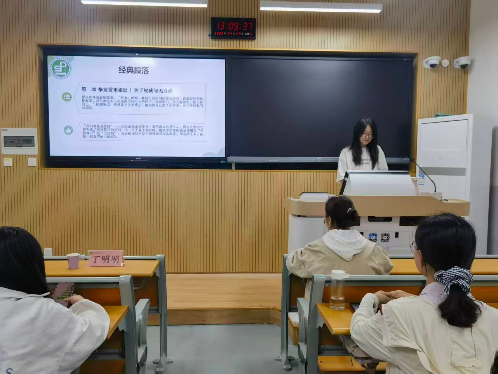 读书分享环节,大家共读《蛤蟆先生去看心理医生》经典段落,多名心理委员结合自身阅读体会与日常工作感悟进行交流,拓宽了心理知识视野,深化了对朋辈帮扶工作的认识。