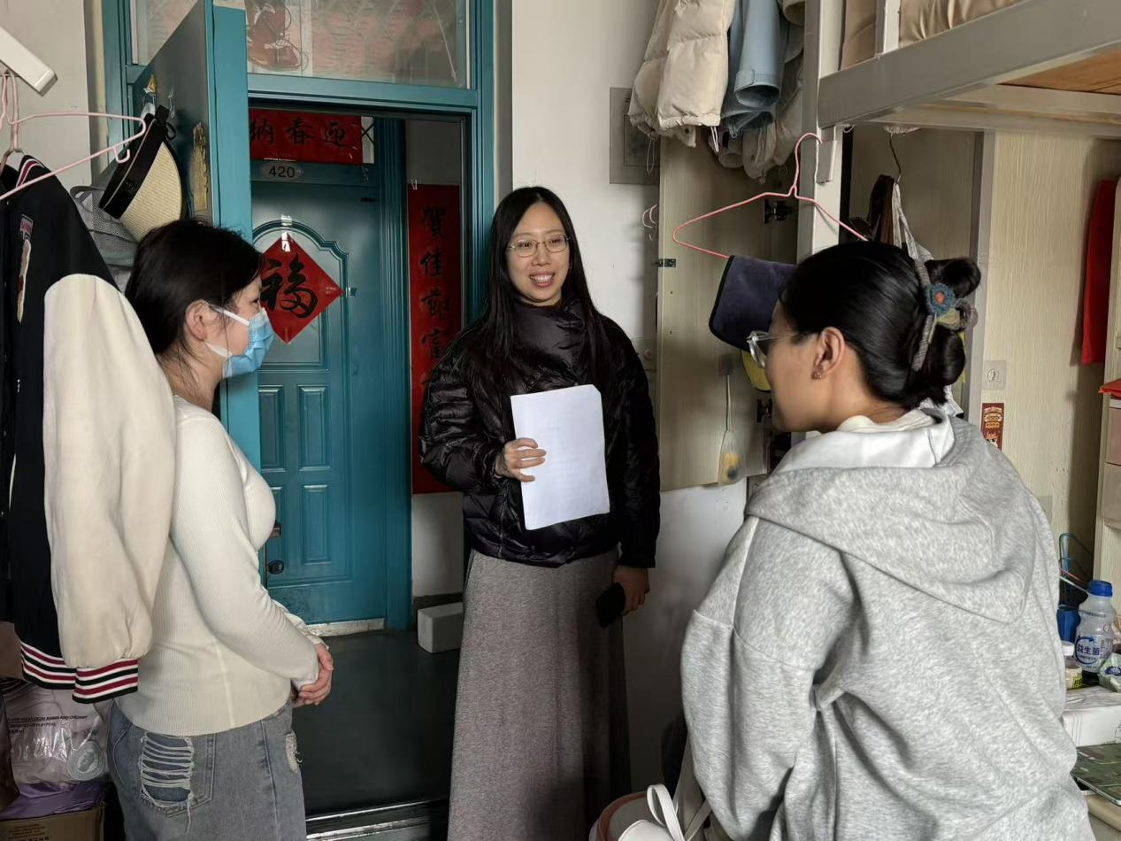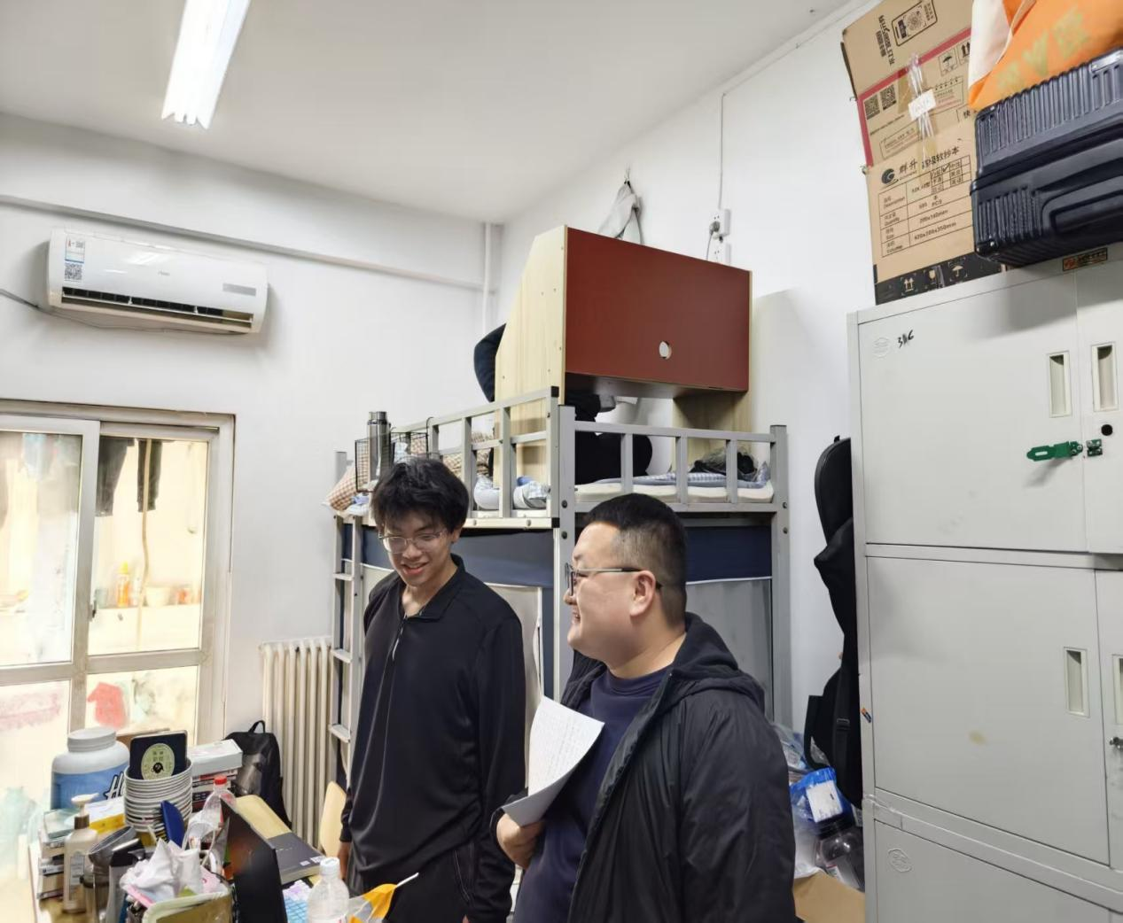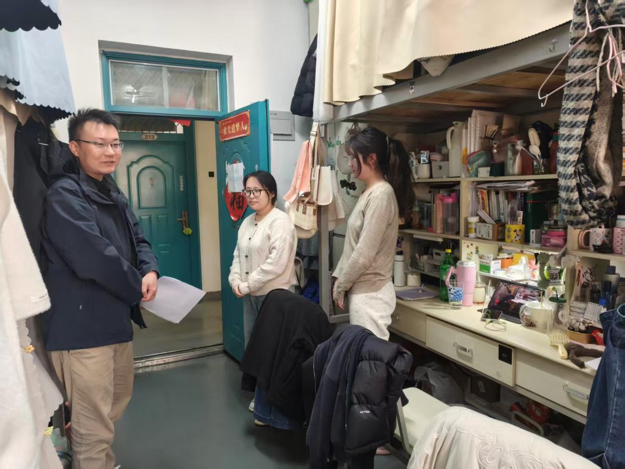 12月1日至2日,院团委书记路平、党委组织员陈翔、团委副书记张金龙、辅导员喻颢如、张泽群、银峰走进各年级学生宿舍开展“全覆盖、无死角”的安全排查。老师们重点检查宿舍电路是否老化、有无私拉乱接电线现象,违规电器使用情况,消防通道是否畅通、消防设施摆放是否规范,对发现的隐患当场指出并指导整改。同时对宿舍卫生状况、物品堆放秩序等进行细致督导。另外,老师们还与同学们亲切交谈,询问冬季生活需求,倾听学习生活中的困惑,用暖心关怀与严格排查,为同学们的冬季宿舍生活筑牢安全屏障。